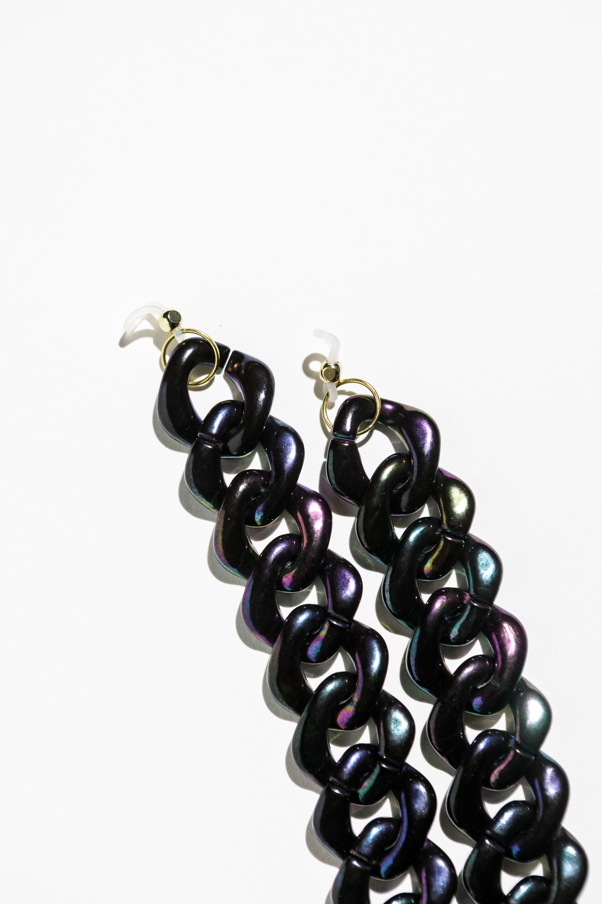 Make a bold statement with these mysterious eyeglass straps! Keep your glasses accessible while looking fly and maintaining your cool. The perfect fusion of fashion and function. Designed with oversized links in a rainbow black hue, these straps add a statement-making touch to your eyewear while keeping your glasses secure. Whether you're going for effortless glam or everyday edge, these chunky chains turn practicality into a fashion moment. Stay put, stay stylish!